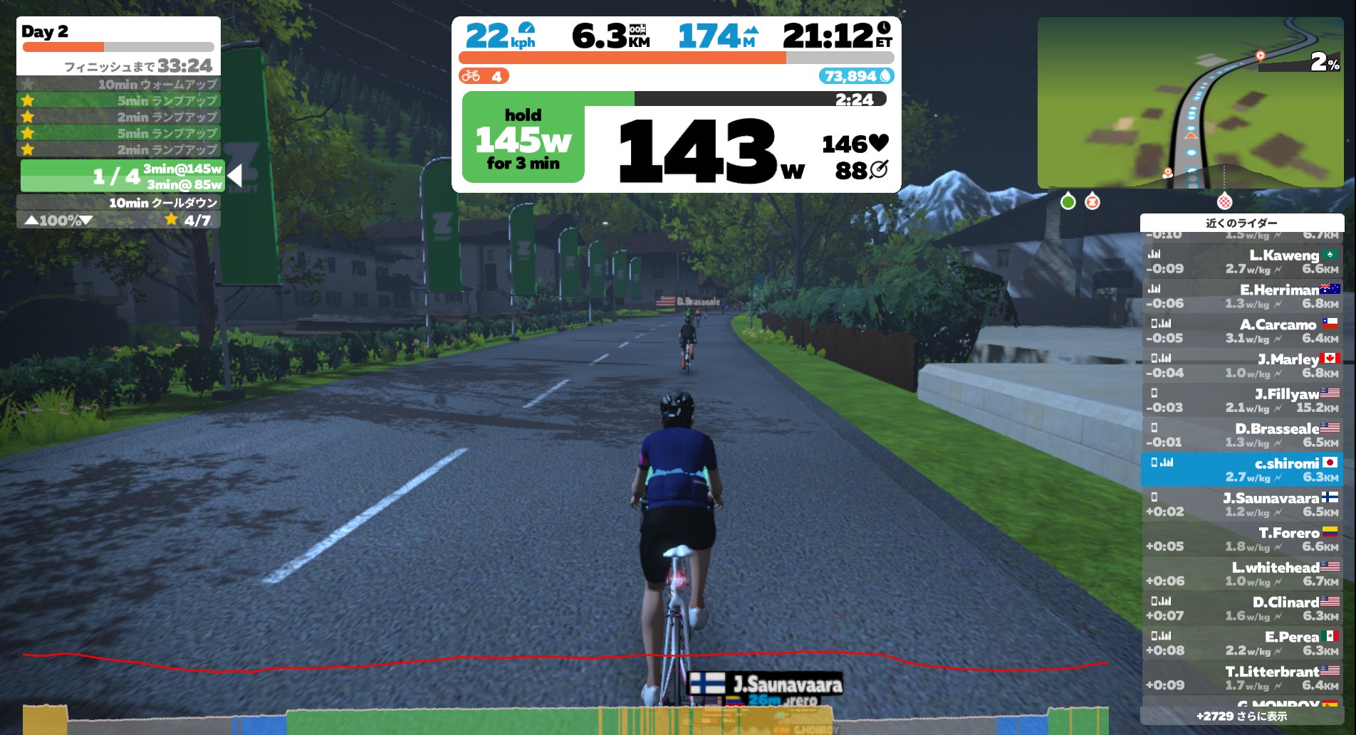 Zwiftは画面にはすでに飽きてきてますが(笑)、パワー・時間が指定されるので